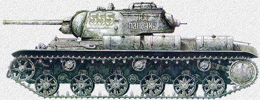 The old gear-box was replaced with a new one and the tank received a new turret with a commander's cupola (the first Soviet tank with a commander's cupola was T-50 light tank). Both ZIS-5 or F-34 guns could be mounted on this turret. In addition, the new tank was armed with four machine-guns: the coaxial MG, the bow MG, the AA machine-gun, and the MG in the rear of the turret. Also, new tracks (608 mm width) were designed specially for this tank. In the summer of 1942, the KV-1S prototype was tested. On August 20, 1942, the production of this tank had begun. However, when the KV-1S appeared in the war theatre, the Red Army was already in need of a tank with thicker armor and better protection. A total of 1370 KV-1S were built. In April 1942 its production was cancelled. Many tanks were sent in tank brigades because the reorganization of the Red Army had not begun yet. The KV-1S took part in all major operations of the Red Army including the Berlin operation. |