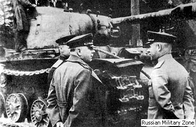 Attempting to increase still greater the firepower of the KV tanks, and also for development of new artillery systems on a "live" tank chassis, it was suggested to mount the 100 mm Gun S-34 in the turret of a KV-85. The new vehicle was designated the KV-100. After testing, the turret of an IS-2 tank with the 122 mm Gun D-25 was mounted on the KV-85 chassis. Although no principal problems resulted from this reworking, the design was rejected because the IS-2 had already been placed in mass production. In 1943, carrying out a personal order of I. V. Stalin, the artillery design bureau attempted to give a second life to the KV-2 heavy assault tank, as very necessary for the destruction of enemy defenses. The primary problem in this regard was the fact that it was necessary to mount the 152 mm howitzer in a standard turret of the KV-1S. The TsAKB and OKB #9 were engaged in secret competition for the development of this artillery system. Both collectives drew the conclusion regarding the principal necessity of using a high-efficiency muzzle brake in the construction of their gun. OKB #9 already had a recommendation for adopting the 152 mm Field Howitzer D-1 as standard. Therefore, during the creation of a tank variant, its recoil components were carried over to the carriage of the D-5T tank gun. Thus far no significant proof has been found that the D-1-5 (or D-15) howitzer was mounted even on a single KV, but an SP-gun on the T-34 chassis with armament from the "152 mm Tank Cannon D-1-5" had been considered for some time as a future variant to replace the SU-122. The TsAKB took a slightly different path. Here they preserved the designs of the ZIS-5 and S-31 guns, but somewhat strengthened them. Production proceeded without problems and a KV with an S-41 152 mm howitzer was demonstrated to Marshal Voroshilov during his visit to the TsAKB in August 1943. Unfortunately, no additional details are known about this vehicle. In view of their futility, all experiments with 152 mm howitzers in tank turrets were halted by order of the NKV in October 1943. The SU-152 already was slated for fielding and work was being conducted on the creation of the IS-122 (IS-2). |