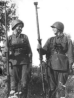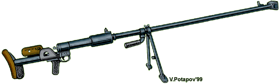 The Red Army employed only two antitank rifles during the Great Patriotic War: the Degtyarev single-shot (PTRD) and the Simonov 5-shot (PTRS). All mentions about other types of production AT rifles either false or refer to lend-lease equipment. Work had been conducted on several rifles before the war, including the Rukavishnikov rifle and Kurchevskiy 37mm antitank rifle (gun). But neither of these had been adopted for general use before the beginning of the GPW. With the beginning of the war with Germany, Soviet infantry did not have an antitank weapons because Soviet leadership considered that the Wehrmacht had thick-armored tanks, against which not only the rifle but even the 45-mm antitank gun would be ineffective. However, in the course of combat operations it became clear that the majority of German tanks did not have thick armor and could be defeated even by the armor-piercing bullets of the 12.7-mm DShK machinegun. In connection with this, in July 1941 many designers received the tasking to develop antitank rifles in the shortest possible time. Simultaneously an attempt was made to put into production the 7.92-mm German PzB-39 rifle as a temporary measure. A month later the design bureaus of V. A. Degtyarev and S. G. Simonov presented their own rifles for range testing, designed around the 14.5-mm cartridge. Because neither rifle was substantially better than the other, both were adopted for general use. The Degtyarev rifle was quite cost-effective to produce. Some 600 rifles were produced in 1941, and 184,000 units in 1942. The production of the PTRD was halted in January 1945. As a consequence of its more complicated design, the Simonov antitank rifle was not produced in as rapid a manner as the PTRD. Thus, only 77 Simonov rifles had been produced by January 1942, but this figure had risen to 63,308 units by the end of that year. The total number of antitank rifles of both systems produced during the course of the war is now calculated at 400,000 units. The following tactics of employment of the antitank rifles were employed. In the offensive ATR crews operated in the combat formations of subunits on tank-dangerous axes and occupied positions forward in the intermediate zones between rifle platoons and on the flanks of companies. Also practiced was a chess-piece positioning of the ATRs across the front and in the depth to a distance of 50-100 metres apart with mutually covered approaches and with broad employment of plunging fire. According to the recollections of R. Mellenthin, "The impression was created that every infantryman had an antitank rifle or antitank gun. The Russians very cleverly distributed these assets and, it seems, there was not a place that they did not cover." The widely held opinion that the appearance of German tanks with thicker armor made antitank rifles obsolete is incorrect. In the first place, light tanks did not suddenly disappear but continued to be employed in combat for some time. And as well, in addition to tanks the Wehrmacht employed a significant number of armored cars and armored personnel carriers. One may also read accounts in which antitank rifles were employed with success against wood-based field fortifications. |