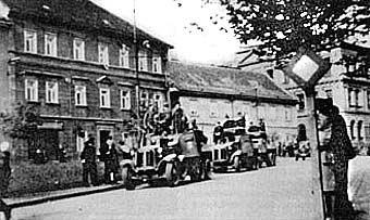 There is no evidence about armoured vehicles during division's retreat to the south from Lusatia too. Till division marched on Czech territory unidentified armoured vehicles are noticed from villages Radonice, Citoliby, Brdloh, Divice, Rocov, Vinarice and the town Louny. When division advanced to Prague from Beroun at 5 May 1945, there were two columns which contained armoured vehicles: