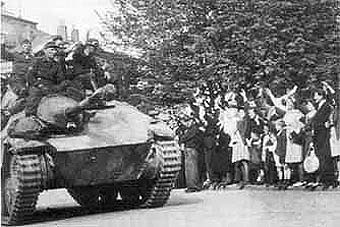 - A T-34/76 of Division's recce troop in Pribram at 9 May 1945. |