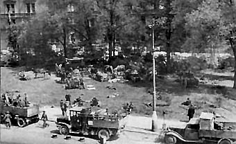 - Field kitchen of 4th regiment in Counts Kinsky Square in Prague at 7 May 1945. At the same place a monument of soviet tankers was erected two months later. |