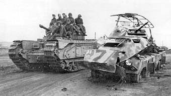 The heavy infantry tank Mk.IV "Churchill" is known on a phrase ostensibly told English prime-minister: "this tank carrying my name has more drawbacks than me". Yes, it had obsolete design: to increase room for the tank crew, the designers of the "Vauxhall Motors" corporation have mounted some elements of transmission under the hull so the track was bent around it, as a tanks of the World War One. The tank had a 12-cylinder petrol engine of 350 h.p. that provided it with 27 km/h speed. First models (Churchill I and Churchill II) were armed with 40 mm gun - too weak for a heavy tank. Further tanks were armed with either 76 mm gun or 57 mm gun. The tank had 152 mm frontal armor. Tank's transmission was quite reliable, however tank had two major disadvantages: first, the tracks were too vulnerable from shells and shell's fragments because they were too high. And second - the track often jammed the tank's turret. However, 5400 vehicles (all models) have been built and in British Army this tank served to 1952. Western Allies delivered to the Soviet Union 301 of both Churchill Mk.III and Mk.IV. These two models were very similar and distinguished only a minimal changes- some changes in turret design. Probably, USSR had received some flamethrower Churchills VII (one of those tank showing in Kubinka museum). Interesting fact - during the Kursk battle, the 5th Guard Tank Army had 35 Churchills. They were the only heavy tanks in this army. |