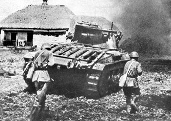 The heavy infantry tank Mk II "Matilda" served from the beginning of the World War Two. The large usage of this tank was in northern Africa and on Eastern Front. This 27-ton tank was protected by 78 mm frontal armor and armed 42 mm gun. Depending on modification, on tanks put two 6-cylinder diesel engines AEC or 6-cylinder diesel engines "Layland" by total power of 174 h.p. or 190 h.p., that provided it with 24 km/h - quite enough for the infantry support tank. In 1941-1942 "Matilda" was the invulnerable to any German tanks and AT-guns except their heavy 88 mm AA-guns. The main armament of the "Matilda" was equal to the Russian 45 mm tank gun - the most common Russian weapon at the beginning of the war that theoretically was able to destroy any German tank in 1941-1942. |