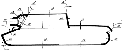 After introducing the newest German tanks, the work over a new self-propelled gun KV-14, armed with 152 mm ML-20 gun, started in the USSR. The ML-20 cannon had 655 m/s muzzle velocity and was capable to penetrate 110 mm vertical armor from distance of 2000 metres. The weight of the AP shell for this cannon was 48.78 kg, and 43.6 kg for the fragmentation shell. Although the SPG was developing for close infantry support, it could been used as a tank destroyer. In early February 1943 the works on project of KV-14 was finished. Due to big back-blow of ML-20 it has been mounted in compartment instead of usual tank turret (like KV-2). |