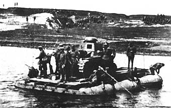 Of the tanks that fell behind, all that is known is that two of them got lost and linked up with their group in the evening. One tank fell out with a broken transmission. Two tanks reached the position of the 106th Sakhalin Regiment and, lacking any ammunition, just the same supported with their "tracks and fearsome appearance" the attack of the intermediate Chinese fortifications near Abgaytui intersection. Here the tank commanders operated with skill and the soldiers took shelter behind them. Two tanks were disabled in the course of the battle but one of these was repaired by evening. The combat actions on the following day also were not laid out clearly for the tank company. Eight machines supported the attack of 108th Rifle Regiment in the area of "Mother" and "Daughter" hillocks. The battle lasted almost three hours. The tanks attempted to assist the infantry, but were unable to do so until the antitank ditch was partially destroyed. Later several machines managed to penetrate into the Chinese positions. One was damaged by grenades but the remainder swept the trenches with intensive machine gun fire. The onrushing infantry consolidated the success. |