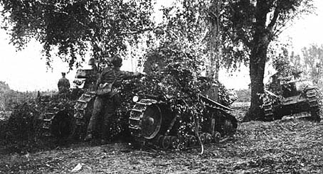 The majority of the T-18 tanks were not around at the beginning of the Great Patriotic War. Approximately 450 tank hulls and about 160 tanks that could still move under their own power were able to serve in the defense of the USSR. It has been confirmed that in 1941 the Osovetskiy Fortified Region, which occupied approximately 35 kilometres of frontage, had 36 armored turret mounts (including those from the T-18) equipped with 45mm tank cannons, and also two tank companies (the 1st, consisting of 18 T-18 tanks in the Kol'no area, and the 2d, of 18 T-18 tanks in the Belyashevo area). In June 1941 the 2d Company successfully fought with German combat vehicles, a significant portion of which also were light tanks, armored cars, and armored troop transporters. Vladimir-Volynskiy Fortified Region was supported by elements of the 87th Rifle Division, which did not have any tanks. However, during the German attack on 22 June, the division was supposed to receive five T-18 tanks at afternoon at Ustilug station. Because these tanks did not have armaments or engines, it was intended that they be given the simplest gadgets for installation of a DP light machine gun and by 23-24 June placed on the terrain as immobile firing points to cover dead space, defiles, ravines, and so on. The best location for such DOTs was on the reverse slopes of hills. It is known that the tanks were received and set up, but details about their combat employment are not known. Somewhat more information is known about the T-18 in the 9th Mechanised Corps. On 23-29 June 1941 the mechanised corps participated in the large tank battle in the area of Rovno - Broda - Lutsk, advancing on Kleist's tank group from Lutsk toward Dubno. By 29 June the corps had suffered great losses in equipment. To replace these losses a battalion of tanks came forward from Sarny consisting of the following: a company of 12 T-26 tanks, a company of 15 mixed T-26 and BT tanks, and a company of 14 T-18 tanks with a T-26 command tank. This force also suffered losses. A summary regarding the composition of the mechanised corps on 2 July notes the presence of two T-18 tanks, one of which was unserviceable. The Minsk Fortified Region also had T-18 tanks. On 23 June 1941 a T-18, armed with a 45-mm gun without engine was established as a BOT [armored firing point] to protect the bridge across the River Drut (in the area of Belynichi). The crew of this tank, artillerymen Sergeant Gvozdev and Private Lupov, defended the bridge over the course of four hours and destroyed three German tanks, one armored transporter, and several wheeled vehicles, and also dispersed up to a company of infantry. As a result of their efforts they were put in for award of the Order of the Combat Red Banner. The last of the known facts regarding the combat fate of the T-18 relates to the battle for Moscow. Nine T-18 tanks participated in battles in the winter of 1941-43 as part of the 150th Tank Brigade, and remained accounted for in documents until February 1942. |