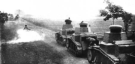 The group commander, S. Vostretsov, underestimated the enemy and therefore did practically nothing to prepare his forces for battle. During the three-month standoff he did not even undertake aerial reconnaissance of the Chinese positions. As a result of this failure, during the course of the battles the Red Army soldiers encountered enemy fortifications in places where they did not expect them. Thus, until the very moment of the attack they believed that the antitank ditch was the first trenchline, and therefore the soldiers and tanks were not equipped with any mean to overcome it. By the efforts of the group commander secrecy was maintained to an absurd level, which led, for example, to the case where the commander of 36th Division for two hours before his unit's departure had to personally run across the frozen steppe in search of his lost ammunition trucks, to whom he had not issued a clear staging point. Taking advantage of moonlight, units departed on 16 November at 11 p.m. and began moving out to jumping-off positions. All roads and fields were covered with a layer of ice from the previous evening's precipitation. Orientation (navigation) was extremely difficult, the more so because the commanders lacked experience in conducting night tactical marches. Units that had been designated to bypass Dzhalaynor station became lost. One battalion, moving at the rear of the column, deviated off to the west from the intended route and fell under withering fire of Chinese machine guns, suffering heavy losses. Regrouping was accomplished too late and by the time it was completed the battalions had to go into battle without any kind of rest. Even up to the time of departure the tank company had not received any kind of order for battle, only its final destination. The tanks had not been topped off with fuel and were practically without ammunition. Three tanks did not have their machine guns mounted. The tank company commander did not have a map of the battle area. It is not surprising that during the night march the tank company became lost and only four tanks arrived at the destination. Here they were refueled and received up to 40 rounds (of a combat norm of 96 rounds). In accordance with the combat plan, the tanks were supposed to support the actions of 107th Rifle Regiment. The tanks that had become lost were not found before the beginning of combat actions. At approximately 1000 the 103d Rifle Regiment and 5th Cavalry Brigade began to attack the northern and southeastern sectors of the Dzhalaynor station defenses. Simultaneously the 107th and 108th Rifle Regiments attacked the enemy on the main axis. It turned out that these units practically did not have artillery support except their organic regiment artillery. It was laughable that comrade Vostretsov assigned a tank company to them (it was actually a platoon). During the attack on the intermediate fortifications the tanks put on a good show attempting to evade the fire of Chinese artillery. They developed too much speed and the Red Army soldiers could not keep up with them. But the objective was achieved and the fortification near hillock # 9 and "Zheleznaya" ("Iron") fell. Later, near noon, the tank unit that now comprised six tanks (two of the lost tanks had arrived at 11:50 a.m.) went into the attack at the main line of the western sector of the Chinese defense. Battalions of the 107th Rifle Regiment were thrown into the attack behind them, but the accelerating tanks suddenly halted in front of the antitank ditch. The soldiers moving behind the tanks, who lacked any makeshift means for overcoming the ditch, also stopped. Having exchanged dozens of fruitless shots with the Chinese, the tanks turned to the south and the sector of attack of 108th Rifle Regiment. Despite the good antitank defense here, the Chinese were unable to knock out a single tank because their artillerymen could not have been worse in their firing. The appearance of tanks did not incite panic among them - just surprise, according to recollections of the participants. The Chinese positions literally bristled with binoculars and telescope tubes. |