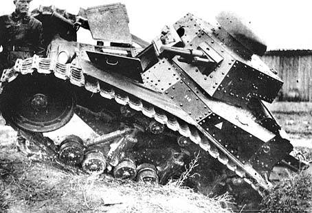 After the occupation of Dzhalaynor came the turn of the garrison of Manchzhuria station. The tanks again supported the 108th Rifle Regiment. Seven of them remained serviceable. Two could not be repaired. At dawn after an artillery preparation the tanks were hurriedly thrown forward, ignoring the mission of covering their own infantry. But here their appearance was apparently unexpected. The Chinese even ceased fire and looked in shock at these fantastic machines. The tanks crawled to the positions, conducting furious fire from machine guns. One of them came within reach of the objective when Chinese grenades flew toward it. Only the efforts of the onrushing Red Army soldiers saved the crew from death. The driver-mechanic was seriously wounded. One tank burst into the trench and got so stuck it had to be dug out after the battle. Another tank lost a track, which jumped off while the tank was negotiating the ditch. On the whole the activity of the tank company in the course of the KVZhD conflict was evaluated as satisfactory. Also noted was the insufficient training of the drivers, inability of the commanders to remain oriented on the terrain, and lack of communications between them. Firing from tank cannons demonstrated the unsuitability of the shells against field fortifications. The machine guns, which were more effective even from the perspective of morale, were of greater use. Desires were expressed to increase the caliber of the tank cannon, increase the number of machine guns, and improve the mobility, speed, and armor of the tank. But there were also complaints in the tank unit, for example, the report of the deputy chief of staff Lapin, who saw in the tanks only negative aspects and decried the "expenditure of the peoples' money on these toys". He preferred that more cannons, armored trains, and armored cars be produced. The significant theme that the old tanks had practically been used up was begun in 1938. Because the modernization of the T-18 that was conducted in 1938 did not yield the anticipated results, the matter of their future use became an acute issue. By the beginning of 1938 some 862 T-18 tanks remained of the 959 that had been built. The remainders had fallen into disrepair and were delivered to the scrap yard after the removal of all armaments and assemblies from them. 160 tanks of the Leningrad Military District that had worn out engines had been turned over to fortified districts in 1934-37 for the construction of DOTs (DOT means permanent fortification). The condition of the tanks that remained in units, and especially in training organizations, was horrible. A large part of them simply were scattered about on the territory of the military units with unserviceable engines, transmissions, and so on. A majority of these had been disarmed. There were no spare parts and repair was accomplished only by removing parts from one tank to repair the others. An instruction of the People's Commissar of Armaments of 2 March 1938 decided their fate: 700 T-18 and 22 T-24 tanks were to be turned over to fortified regions of military districts. There it was intended that unrepairable vehicles be used to create fixed firing points. It was recommended to use twin DA-2 machine guns, two DT machine guns, or the model-1932 45mm tank gun for arming of these new DOTs. The hulls of these machines, along with their engines and transmissions, were to be turned over for scrap metal. Tanks that could still move were partly rearmed with the type-1932 45mm tank gun and given to fortified region garrisons to be used as mobile firing points. |