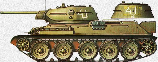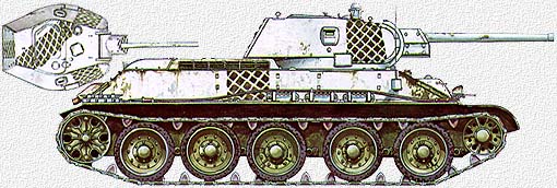 T-34-76 was produced until mid-1944. Then it was replaced with its upgunned variant - the T-34-85. The "Krasnoye Sormovo" also developed and produced 68 T-34-76 protected with anti-HEAT shields (skirts) like those on most of the German tanks. It supposed these skirts would protect them from German HEAT ammunition, but it wasn't checked. In the very first battle common 75 mm AP rounds destroyed most of those tanks. The idea was considered as hopeless and was abandoned. |