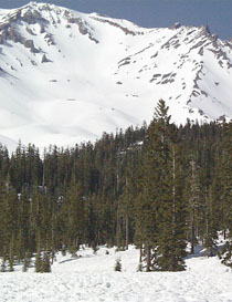 A look at Mount Shasta from near Bunny Flat and Horse Camp.