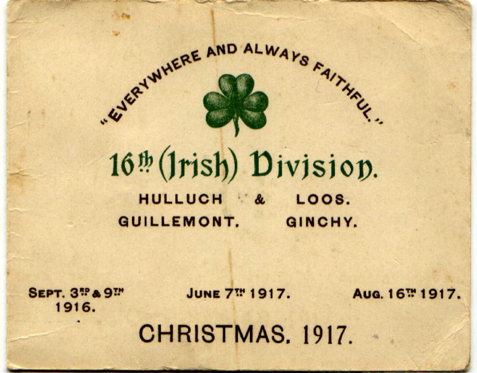 A 16th Irish Division Christmas Card, kindly provided by Joe Ryan