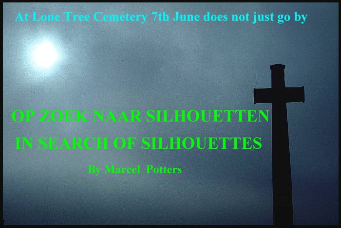 Lone Tree Cemetery. A green oasis in the middle of the West-Flemish scenery. It is still, the only sound the wind that rustles the leaves of the willows around the water's edge. Round about is a colourful patchwork quilt of fields -now lying fallow -with just here and there the red of the roof of a farmhouse. In the distance the spire of the church in Wulverhem and the stumpier one of the church in Nieuwkerke.