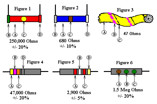 the resistor in the form of narrow bands, dots, or as a body color. The