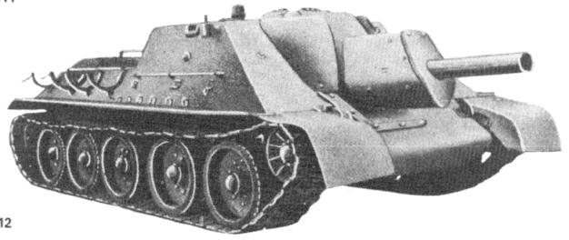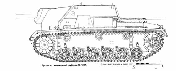 Based on the T-34, the SU-122 served as an assault gun. With the removal of the turret, an armoured superstructure was placed. Fitted in the superstructure was a modified 122mm M-30S Model 1931/1937 field howitzer. It entered production at UZTM in Sverdlovsk in December 1942, and 27 examples were built in late 1942. Another 454 were built during 1943, and when production ceased in early 1944 some 1.148 SU-122's had been built. The first SU-122's saw combat on the Volchov Front in the winter of 1942/43, and it took part in the Battle at Kursk. It proved to be effective as an assault gun, delivering direct fire during attacks on strongpoints. The guns armour penetration was less than expected and therefore a shaped charge HEAT projectile was developed, but was only accurate at short ranges and its penetration was still disapointing. In 1943, prototype named SU-122P was built, armed with a long barrelled 122mm Model 1931/37 gun, but this weapon were too large and it was not accepted for production. In place of the common awkward-looking armoured mantlet used on most SU-122s, late production models had a ball mantlet similar to that adopted on the SU-85. The germans were happy to deploy as many captured SU-122s as possible. The russians managed to capture some german PzKpfw III and StuG III tanks. Many of them did not, however, enter service within the Red Army, partly due to the lack of spare parts and ammunition to the german guns. Therefor it was decided to re-arm captured vehicles with either a 76.2mm ZiS-3 gun (SU-76i) or with a 122mm howitzer. The 122mm tanks was to be known as the SG-122A.