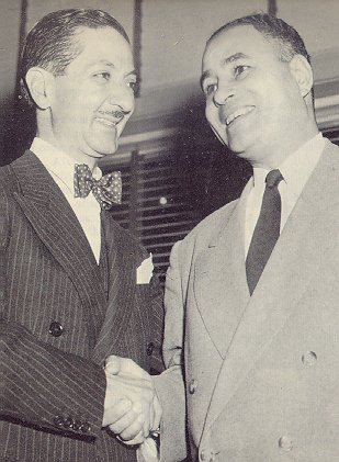 | Dr. Ralph J. Bunche (right), Under Secretary of the U. N. and American winner of the 1950 Nobel Peace Priye, ist congratulated by Nasrollah Enteyam of Iran, President of the United Nations general Assembly at the time of the award. |